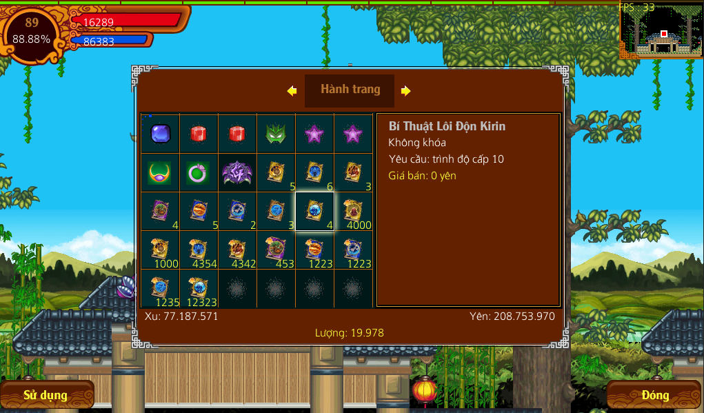 - Để nâng cấp bí thuật, bạn cần sách bí thuật cùng loại. Ví dụ để nâng bí thuật Thiên Thủ Quan Âm lên level 2 thì bạn cần 2 sách. Bấm vào sử dụng là bí thuật sẽ được tăng lên level