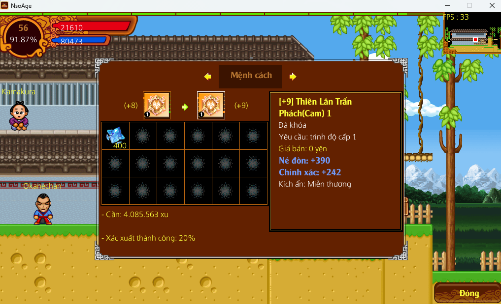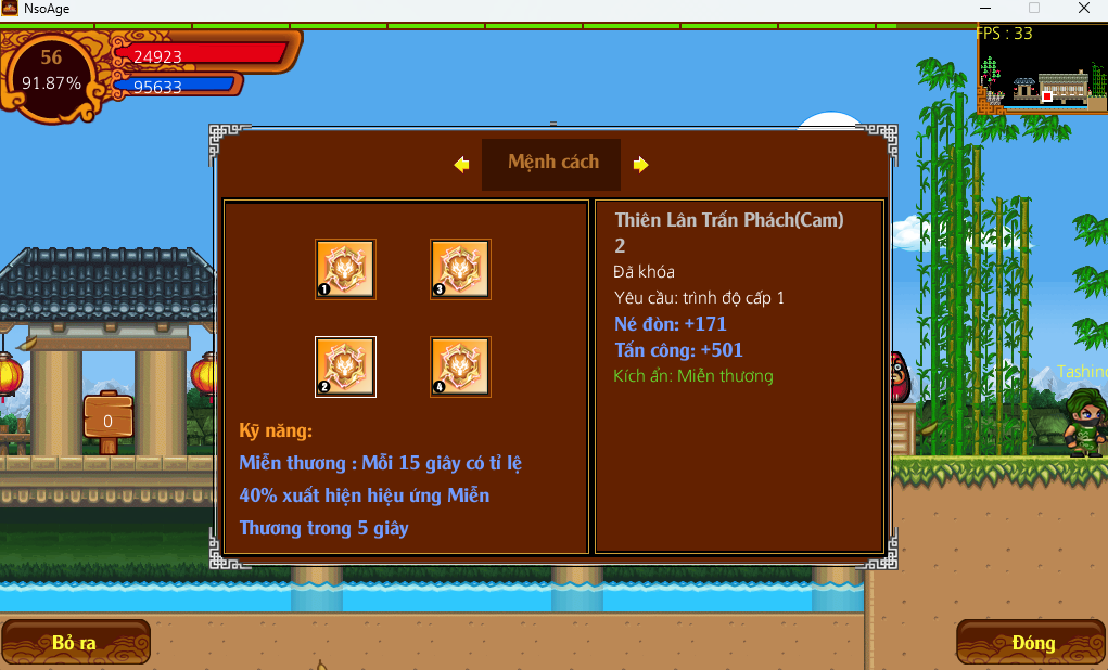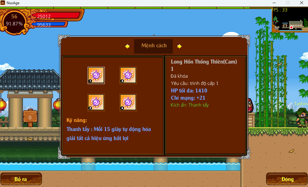 - Trang bị đủ 4 mệnh cách cùng loại sẽ được kích ẩn kỹ năng